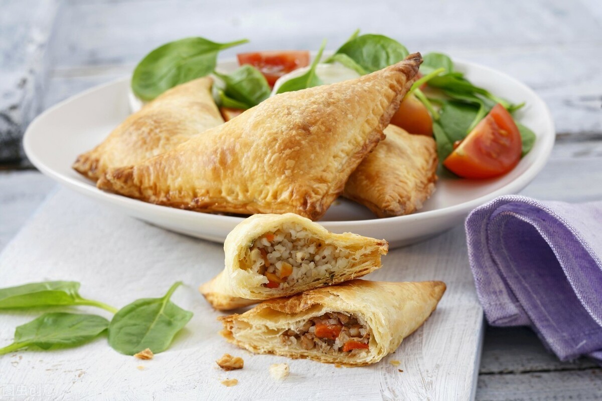 还有一个意思是小馅饼 。这里指的是一种甜品。这种馅饼里面填充了果肉、外面有一层酥脆的表皮,像饺子一样折叠过来。