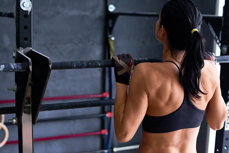 训练指导:如图所示,双手握住横杠,双手握距大于肩膀距离,手背朝向自己,呼气,用背部和发力 带动全身向上提,使自己的身体向上提升,直到胸部到横杠的位置,下巴也尽量超过横杠。注意感受背部的发力,因为此动作主要的刺激点和不同之处就是对背部的刺激。