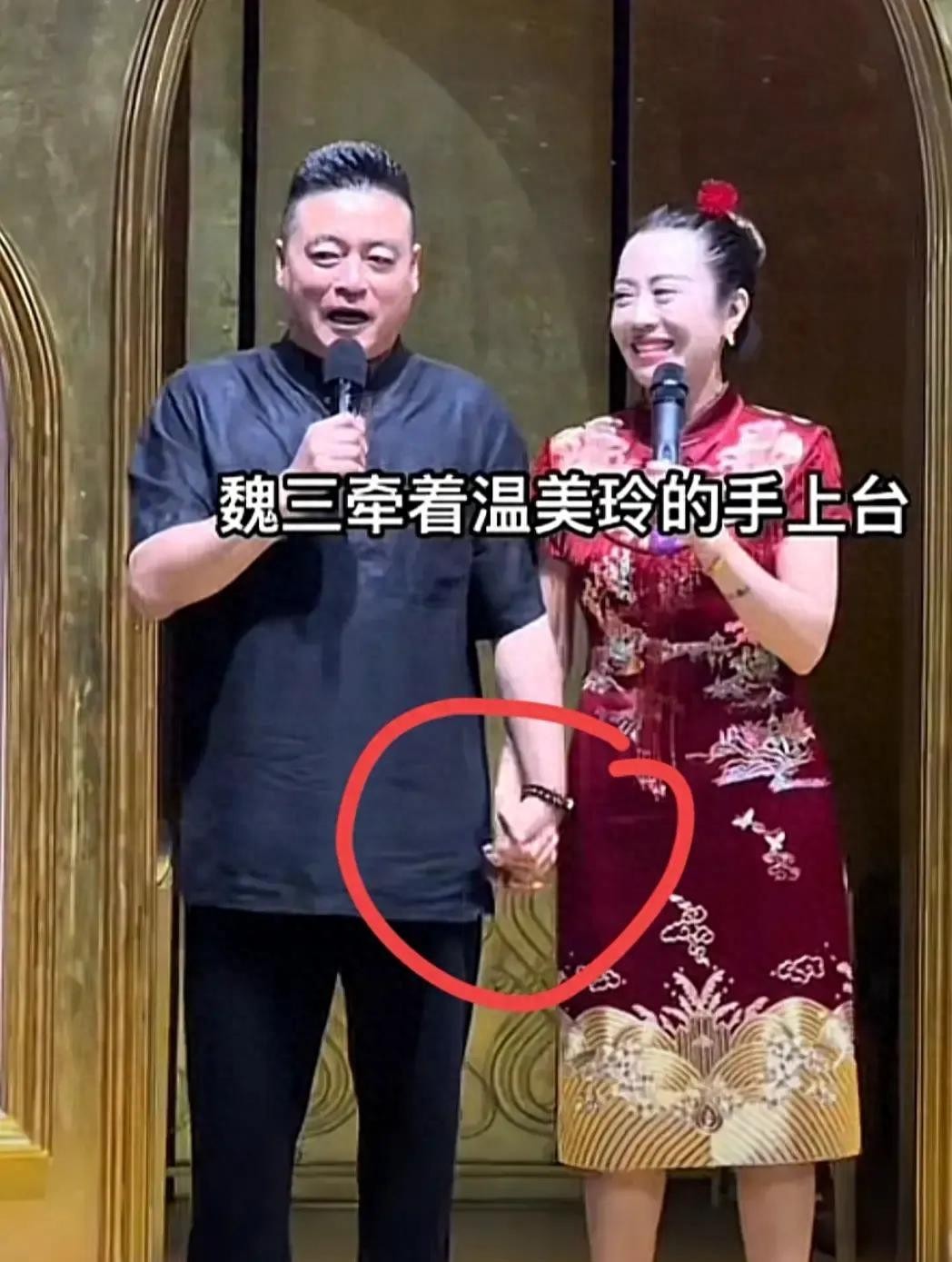 答谢宴上,我们看到温美玲和魏三手牵手共同表演,引发了人们的猜测,是否两人已经在一起。虽然温美玲没有在直播中明确表态,但这种亲密的举动让人不禁猜测是否他们已经开启了新的恋情。