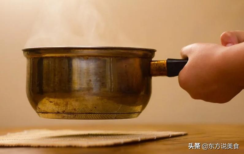 2、锅中混合物煮沸后,端锅离火,小心不要被烫到。拿锅把的时候可以垫上一块抹布,更安全。