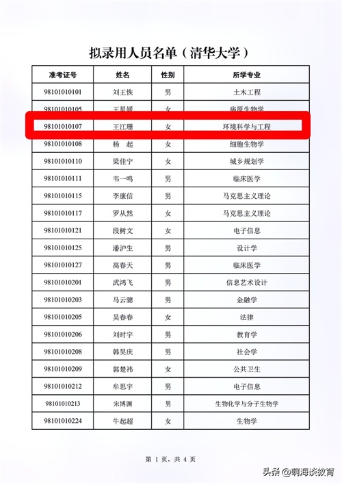 王江珊的大学专业有点奇怪;表格中显示她是“环境科学与工程”专业,我有点想不通,正常说当时她是省排名第一,是不可能选冷门专业的,为什么现在是天坑专业呢?