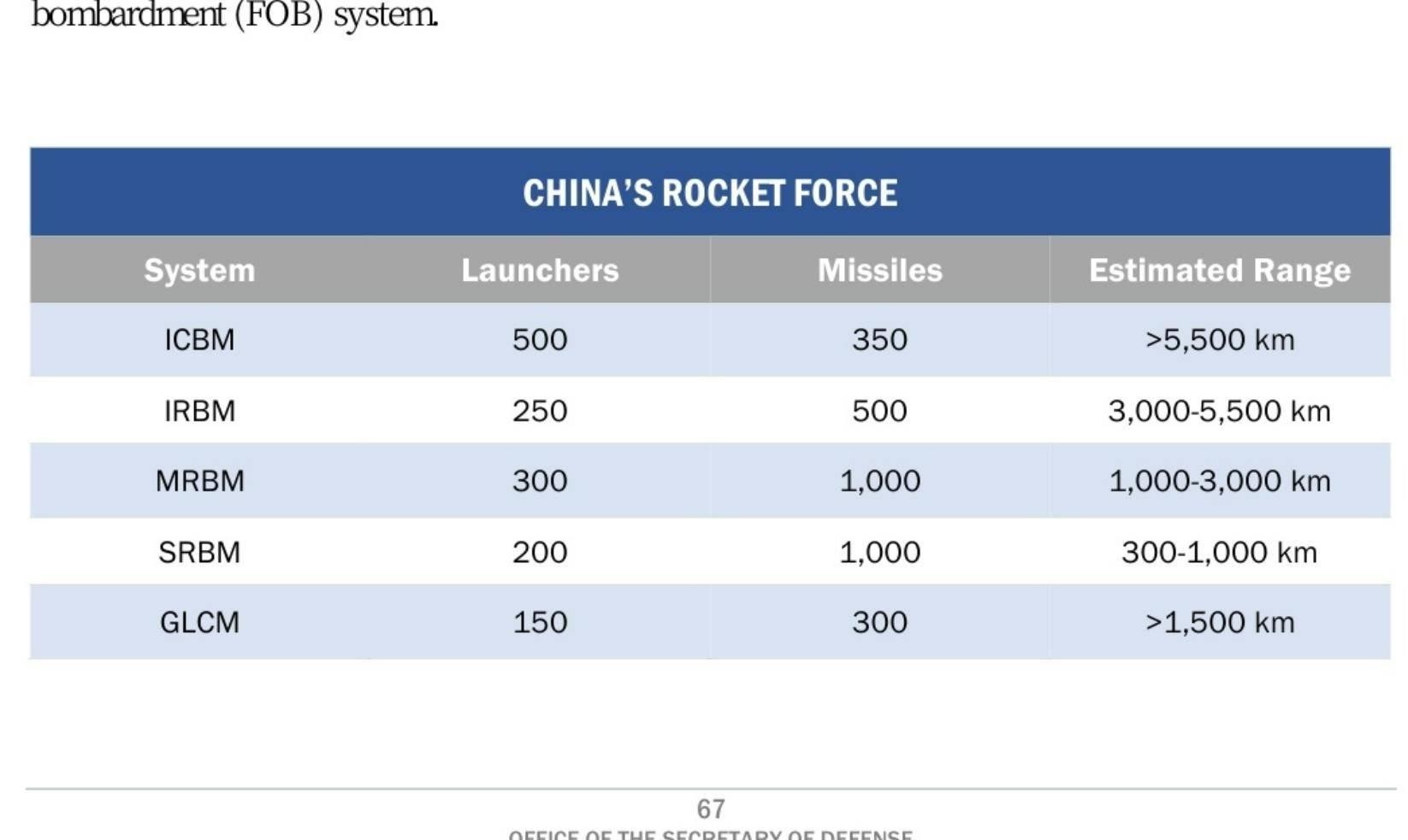 长久以来,西方国家对中国核武器数量的估计一直稳定在200~300枚之间,而美国在过去二十年中一直声称中国拥有大约200枚核弹头,无论中国的导弹技术发展到何种程度。但现在,美军终于承认中国核弹头的数量确实有了显著的增长。