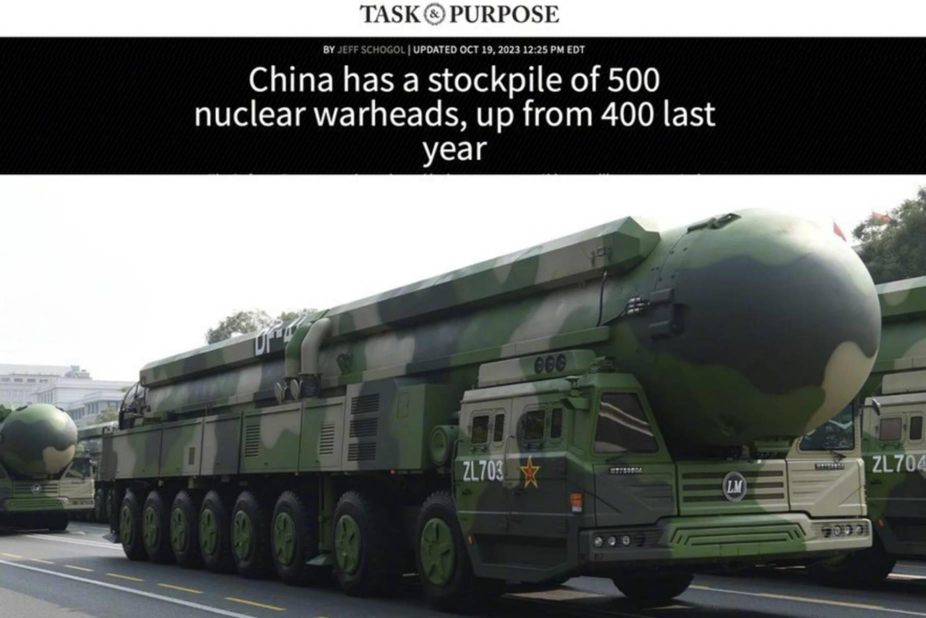 中国现有的导弹发射井数量已经能够吸引美国近千枚核弹头的攻击,尽可能地消耗美军和北约的战备核弹头,从而为潜射和机动洲际导弹进行二次核反击创造有利条件。值得一提的是,《2023年中国军力报告》的发布意味着美国终于承认中国核弹头数量的实质性增长。