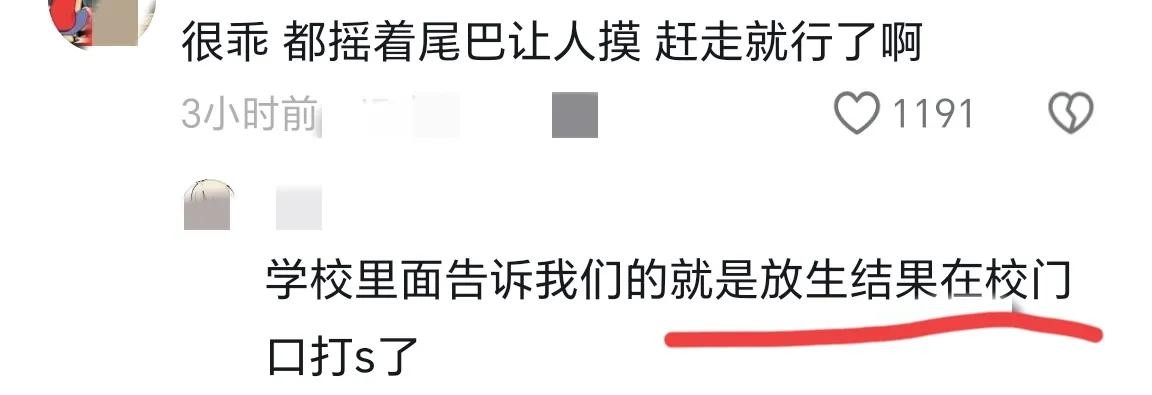 有的网友说:狗狗很乖,都摇着尾巴让人摸他,并且学校告诉学生的是放生,结果却在校门口被打死了,言行不一啊。