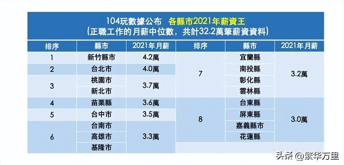 当然,这只是最低工资标准。2022年1月,台湾省公布了全省62个行业的平均工资。据统计,月平均工资约4.2万新台币,相当于9550多元。具体来说,各行业的工资差距很大。比如台湾省电子制造、半导体、纺织制造、投资理财等行业,月平均工资在5万新台币后,相当于1.1万元以上。