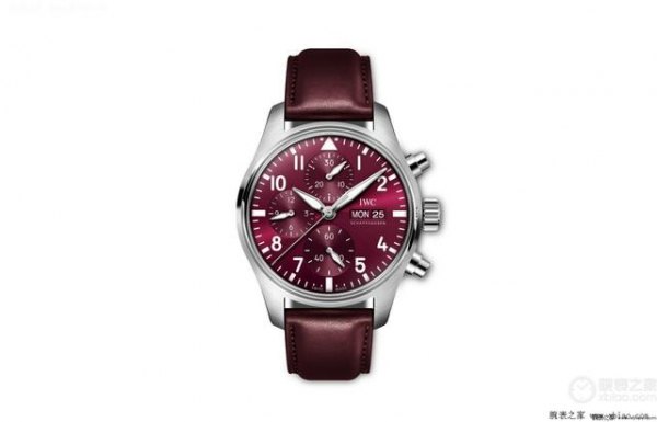 腕表点评:为迎接中国农历虎年的到来,IWC万国表推出了这款飞行员计时腕表41虎年特别版。腕表采用了41毫米黄金尺寸的精钢表壳,包容性较高。表壳经过拉丝工艺修饰,边缘棱角及表圈则采用抛光工艺处理,使腕表更具层次感。作为虎年特别版腕表,勃艮第红色表盘是这款腕表的亮点之一,盘面整体布局依旧延续了代表性的驾驶舱仪表风格设计,以清晰易读为首要标准,竖直放置三枚副盘。同时,勃艮第红盘面上还装饰有太阳纹,随不同光线角度照射会产生变化,三枚副盘也带有唱片纹效果。翻转腕表,可以看到品牌别出心裁的将摆陀做成了一个镂空猛虎腾跃的图案,别具寓意。