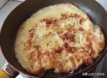 (3)平底锅放油,油热放入鸡蛋,鸡蛋摊成饼取出。