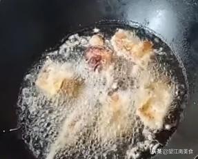 (5)锅中放油,油温六成热,鸡蛋挂水淀粉糊,放锅中炸,炸至金黄捞出