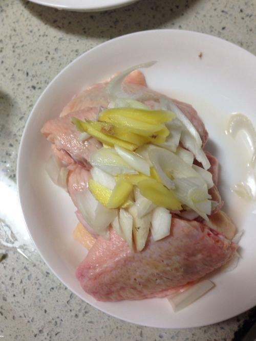 3、倒上所需的辅料!根据自己口味调!有些朋友喜欢吃辣的!可以放花椒辣椒等!腌制半小时就可以了上面盖一层保鲜膜入味更快!