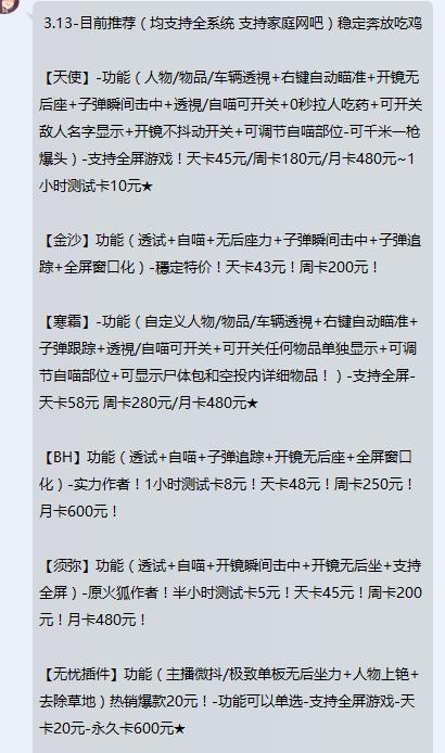 小编吃鸡玩一百多个小时了,不说大神,但是也不算萌新了,对吃鸡十分着迷,但是吃鸡途中经常遇到各种神仙,小编是各种气啊,如是小编潜入了几个外挂群,看看现在的外挂到底多厉害。