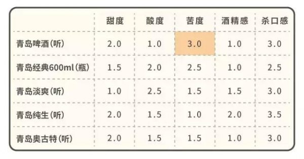 *表中的杀口感,指的是二氧化碳对口腔的刺激程度,之后同理。