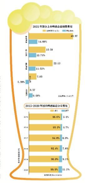 青岛啤酒表示,2021年销售费用上涨,主要原因是本年度销量增加及公司加大品牌宣传力度。重庆啤酒称,销售费用的上涨,主要来自市场广告费用投放增加以驱动业务的发展。