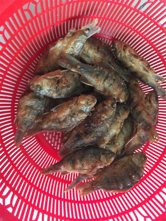 金黄酥脆的油炸小鱼就完成了,连鱼骨鱼刺都可以直接吃,非常爽口。