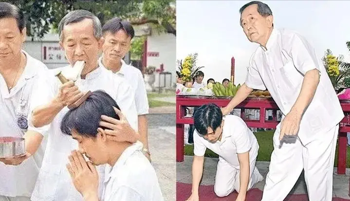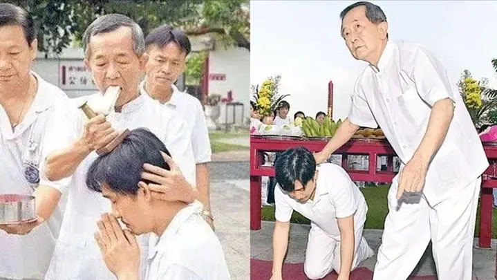 于是林建岳就带着剧组的所有演员浩浩荡荡的来到了泰国,在白龙王庙给所有演员做了法式,白龙王先把香烛放入口中,然后在每个演员头上吹一下,他把这个操作称之为灌顶。