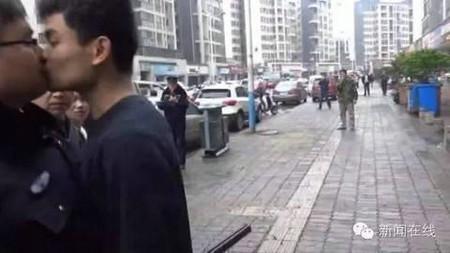 男子阻碍执法突然强吻城管 连啃嘴两次