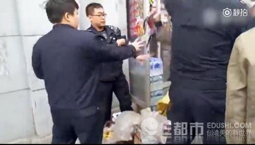记者从公安机关那拿到了城管当时执法时拍摄的视频。视频一开始,城管准备暂扣桌椅,一名年轻男子直接坐到桌子上阻止。随后,城管坚持要将桌子抬走,弄翻了桌子和坐在上面的男子,男子于是开始动手阻挠。店里的两名年轻女子也操起餐具和垃圾桶,朝城管队员身上乱扔。随后,情绪越来越激动的男子拿起板凳恐吓城管,并强行拿走被暂扣的板凳。当他的行为被城管队员大声劝阻时,男子突然做出了一个令人意外的举动。