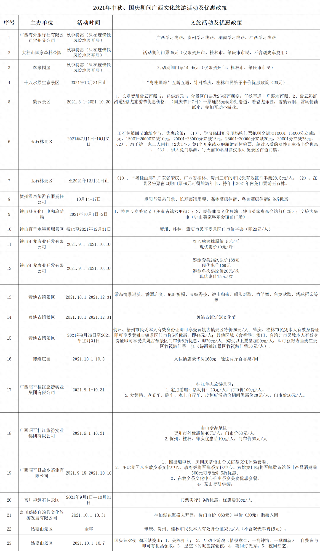 这个国庆,带上这份假期景区优惠目录,一起畅游贺州吧!