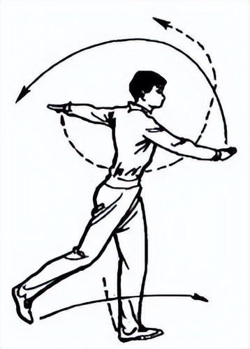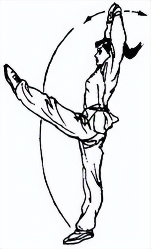 (4)先练习原地旋风脚,然后再练习上步旋风脚。