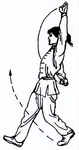 纠正方法:起跳与摆臂动作协调配合,注意提气、立腰、头上顶;起跳后要挺胸、抬头展体,跃步幅度必须超过一弓步之长。