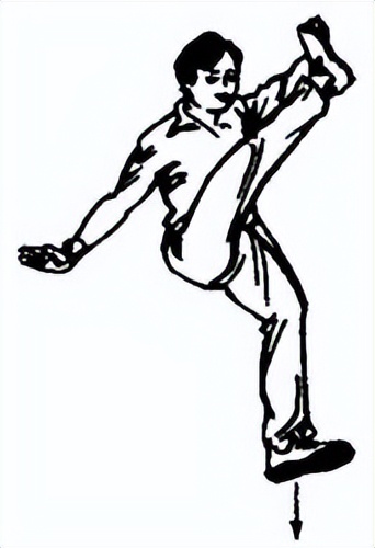 纠正方法:可做右腿蹬地起跳,左腿屈膝摆起,同时两臂上摆并在头上击响的踏跳练习。