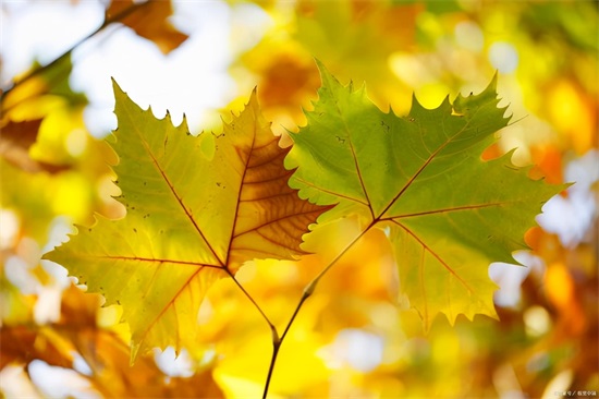 33、秋天,叶子自由自在地踩着旋转的舞步飘落下来。
