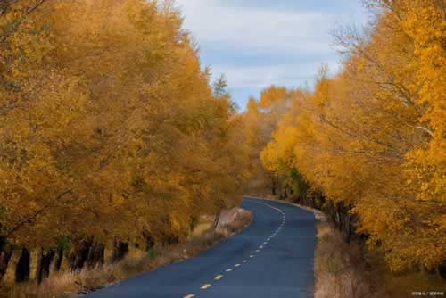 43、秋天,一片片落叶随风飘舞,乘着风儿去看看地平线上的风景。