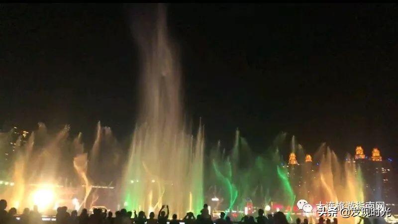 每当夜幕降临,水声、音乐声、涛声与变幻的激光彩灯融为一体,气势磅礴、美轮美奂、煞是迷人。