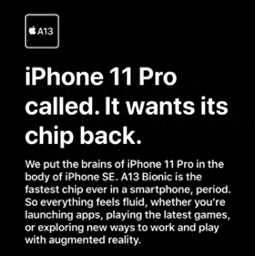 为了新款iPhone SE,苹果直接在官网“内涵”竞争对手,明目张胆cue安卓手机!充分表达了新款iPhone SE的使命:挖安卓墙角