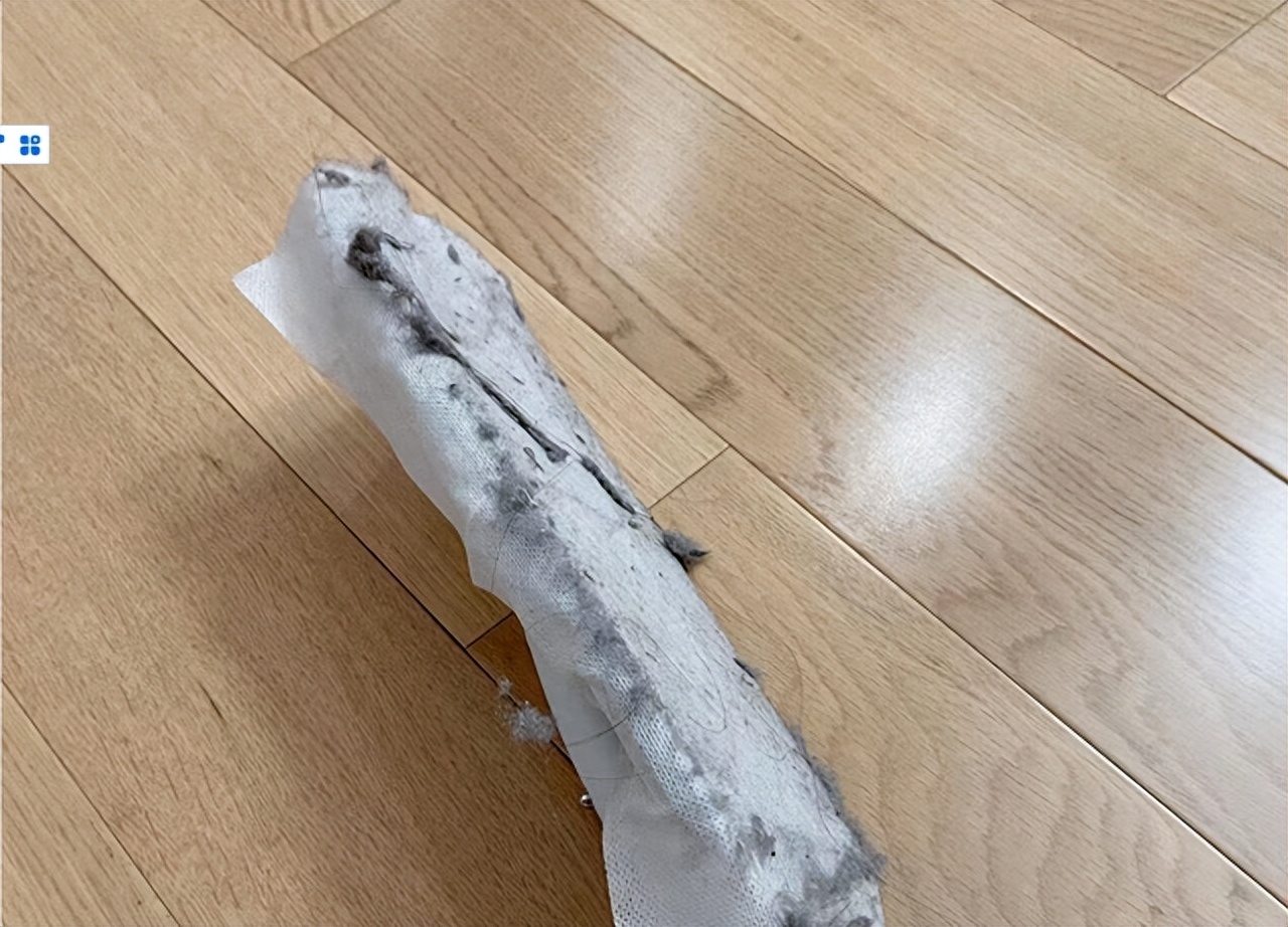 你会发现拖把下方,全都是黑乎乎的灰尘、毛絮。