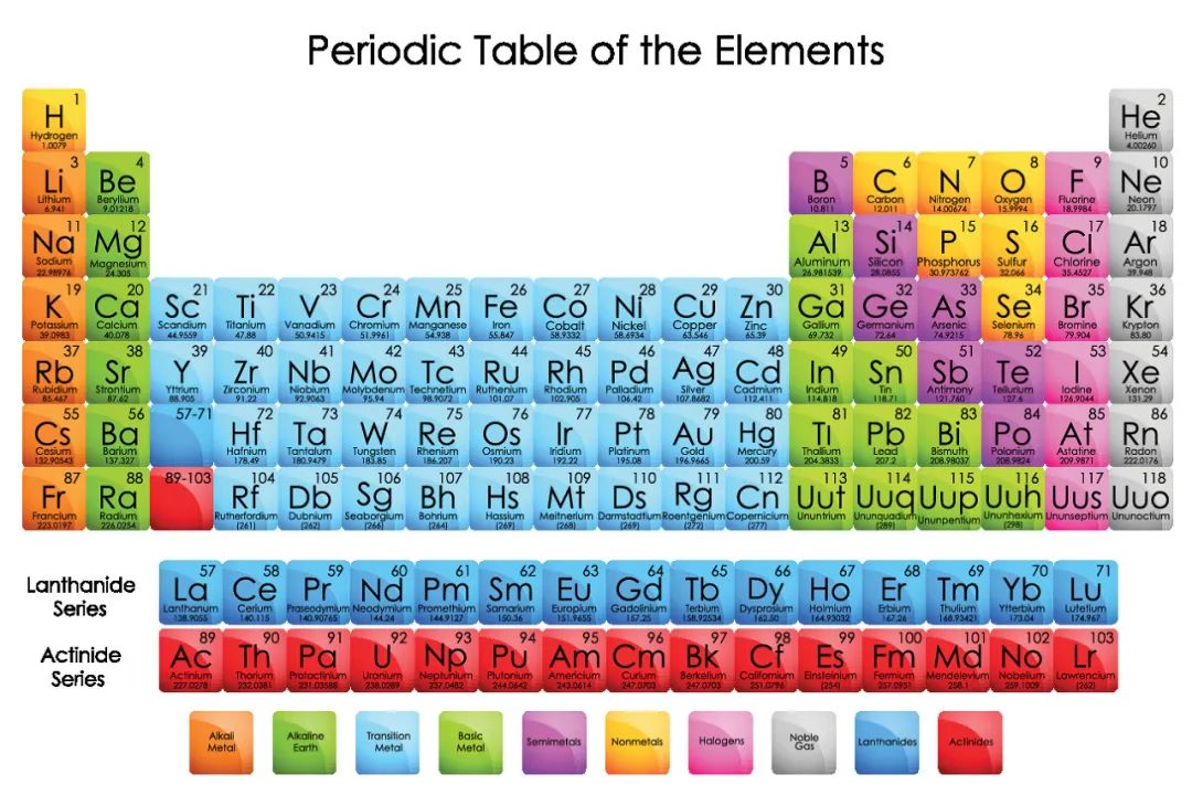 元素周期表,图库版权图片,不授权转载两者不仅名称不同,它们的产量也大相径庭!有色金属由于种类众多,其矿产地的数量也就比黑色金属要多得多。而黑色金属虽然矿产地少,但是其每个矿产地的产量可是很多的,使黑色金属的总产量达到了世界金属产量的95%!并且铁、铬、锰这三种金属都是冶炼钢铁的主要原料,而钢铁在国民经济中占有极其重要的地位,亦可作为衡量国家实力的重要标志。