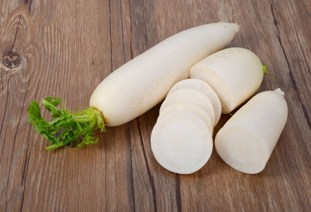 白萝卜切块,用筷子扎孔。和羊肉一同放入冷水中,煮沸后将羊肉取出,单独烹饪。