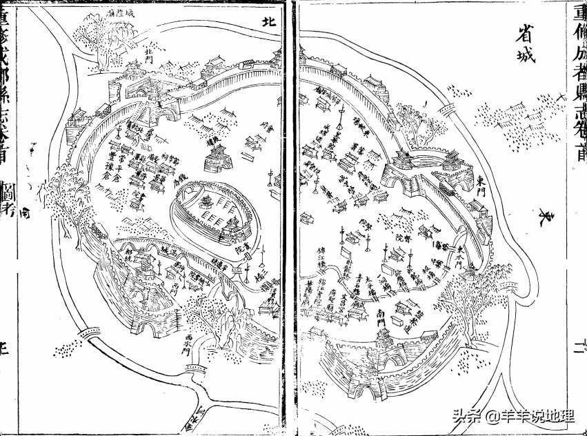 东晋时期,桓温灭李氏“成汉”,焚毁少城。时至隋朝,当时的蜀王杨秀基于少城向西、向南扩建,史称“通广十里”。唐太宗时,分成都而设两县,一曰成都县,位于西北,一曰蜀县,位于东南,肃宗时改为华阳县。此时的成都城,虽历经多次修缮扩建,其基本与秦时无几。到了唐末时期,城垣颓溃,时任西川节度使高骈组织修缮,城周到11公里,墙高8米有余,城门十道,史称为罗城,又称为太玄城。罗城的本义,就是包罗、扩大的城池,其面积较之旧时扩大6倍,达到7.3平方米,改变了大城包小城之格局,第一次成都四面有了完整的护城河。罗城的名称不算显赫,其整体城市布局却在后世屡次修缮中得以留存,一直到近代。