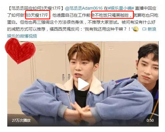 喝黑咖啡减肥的明星不只有信,范丞丞也透露自己曾3天之内靠喝黑咖啡狂瘦了17斤,这也让不少他的粉丝惊呆了。