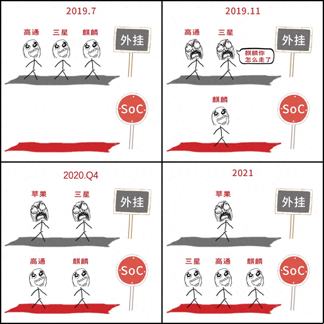 除开华为外,实际上三星、高通、苹果方面也认可SoC发展趋势,至于他们将何时推出5G SoC,老熊已经给出答案,大家也可从下面这张图进行形象理解。