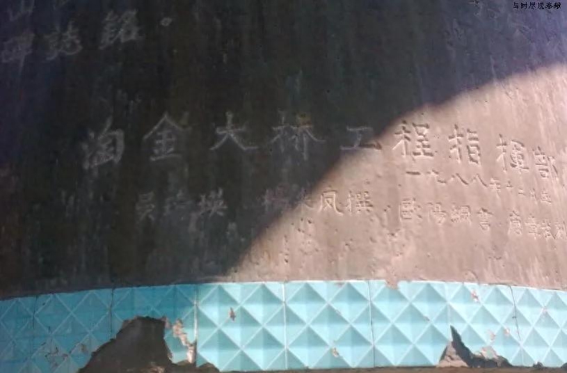 刻有设计者吴琦瑛姓名的大桥铭文(网络照片)。