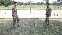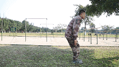 腰腹部是在静止状态下的发力,要保持躯干和下肢的姿态。对于官兵们练习的实际需求,可能会借助前后“摆浪”来完成引体向上动作的完成。通常采取辅助练习的方法,仰卧举腿和仰卧两头起,官兵们可根据自身需求自行组合课目练习。