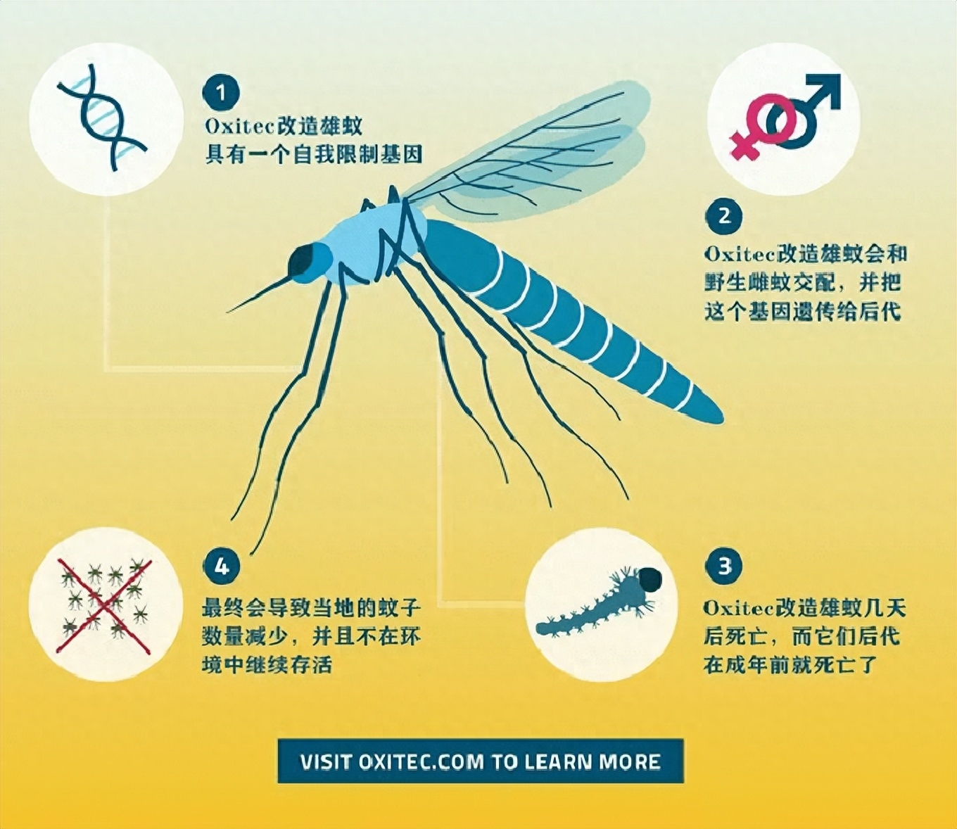 这种绝育亚洲虎蚊的基因并没有发生改变。学过生物的都对此有所了解,基因突变的概率是非常非常小的,而且科学家的灭蚊方法只是利用细菌来阻止它们繁衍,并不是将它们的基因替换掉,如果基因发生改变,产生“超级蚊子”也是有可能的,但我们奚教授团队目前的方法相对来说是非常安全的。