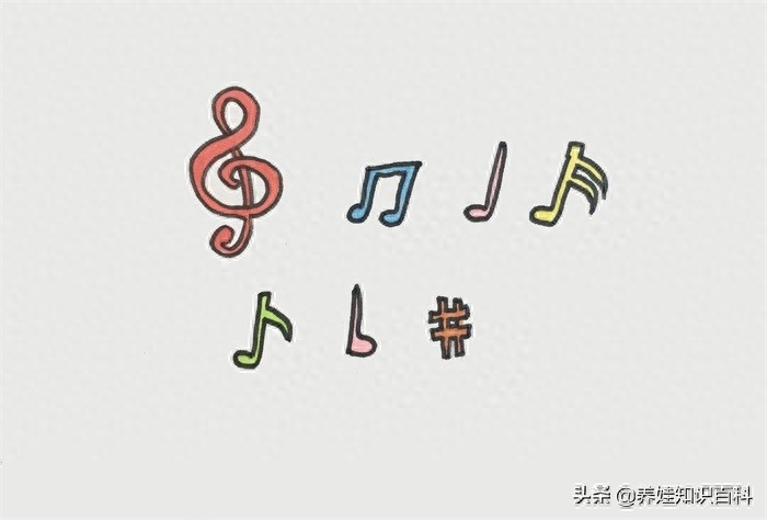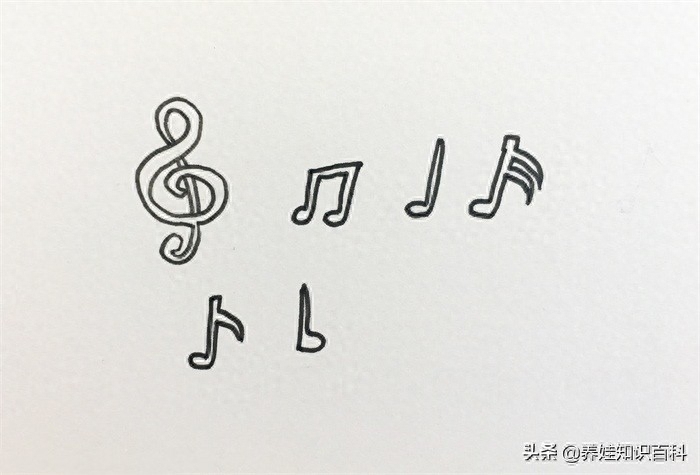 怎么样?音符的画法学会了吗?这7个音符,可以画得卡通一点,这样孩子们自己也会对音乐有很高的兴趣。如果大家也希望孩子喜欢音乐的话,就跟孩子一起来画音符吧。