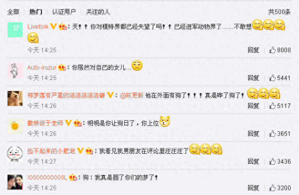 今年1月27日下午,王思聪爱狗微博“王可可是个碧池”的粉丝数量为6万多,仅一天时间便飙到了9万多。不少网友纷纷感叹自己活的还不如一条狗。有的网友为自己默哀居然看完了王思聪狗的所有微博也是醉了。现在王思聪家的狗都毫不费力的上热门了,集“萌贱”二为一身的阿拉神犬,粉丝数嗷嗷涨,网友都该拜在狗腿下了。