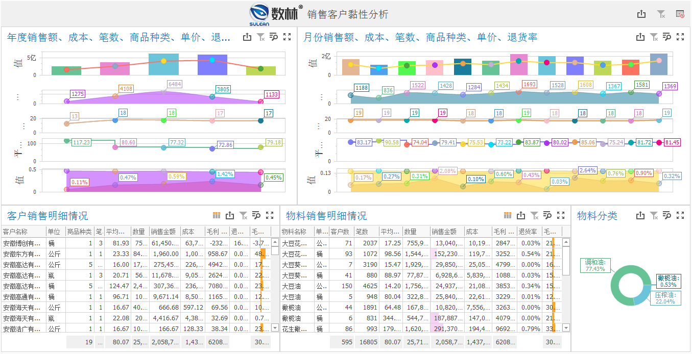比如,查看的过程中,我们发现一些客户的成交的销售额、笔数、商品种类等在下降,那么我们可以参考下面这张报表来分析原因: