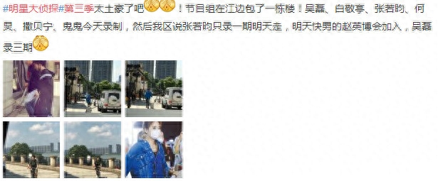 前段时间有网友爆料:《明星大侦探》第三季太土豪了吧!节目组在江边包了一栋楼!吴磊、白敬亭、张若昀、何炅、撒贝宁、鬼鬼录制,张若昀只录一期就走,快男的赵英博会加入,吴磊录三期。