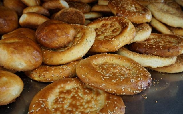 维吾尔族的饮食更是风味独特、丰富多彩。馕(波斯语面包)、抓饭(维吾尔语朴劳)、烤包子(维吾尔语沙木萨)、薄皮包子(维吾尔语皮特曼吐)、烤肉(维吾尔语喀瓦普)――名目繁多,各具特色。但就馕而言,就有艾曼克馕、托喀西馕、窝窝馕。另外还有油馕、甜馕、肉馕,品种多达50多种。