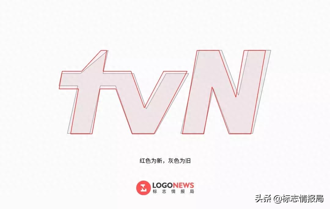 tvN的新LOGO依然保留了之前的字体结构与红色的配色。新字标最显著的区别在于字母「t」顶部的尖角「砍掉」了一截,另外横笔画的增加了厚度,与其他笔画在视觉上更加协调。