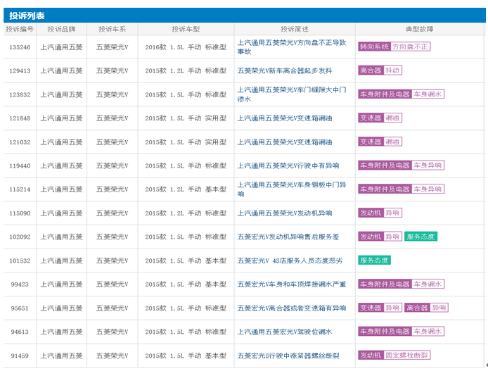 此外,很多车主反映,五菱的产品质量与服务态度都较差。笔者在汽车投诉权威的车质网上看到,五菱产品质量被消费者诟病众多,诉较多的主要为异响、漏油等问题。