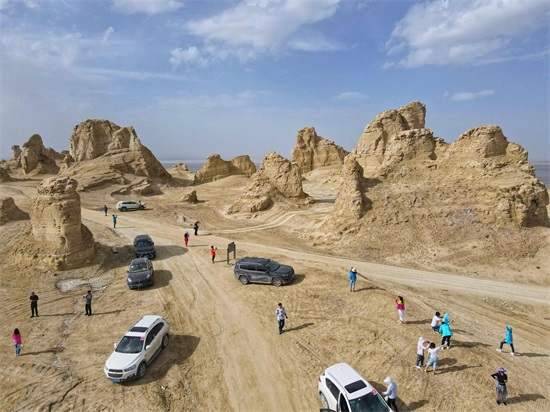 第三天从大柴旦出发,行驶11公里来到大柴旦翡翠湖(门票110)。盐湖由矿区资源开发后的卤化物(水)和矿物质(结晶物)组成。因含钾镁锂等金属元素和卤化物,盐床或淡青、翠绿或深蓝交替、与湖里盐花辉印调色成碧绿焕彩的翡翠田园,所以称为翡翠湖。游览完翡翠湖继续行驶319公里来到俄博梁雅丹。俄博梁是迄今为止国内发现的最大风蚀土林群,也是世界面积最大、景观和造型最奇特、最集中、最典型、最具代表性的雅丹地貌群。雅丹,源于维吾尔语“险峻的小土丘”的意思,而俄博梁源自蒙古语敖包梁,敖包是蒙古族的土堆子、石推子的意思。从俄博梁的山梁上往下望,戈壁上有大量的龟背型的土丘,看上去就像一个个敖包一样,“敖包梁”由此得名,后来逐渐就叫成“俄博梁”了。游览完俄博梁继续行驶294公里来到茫崖市住宿。