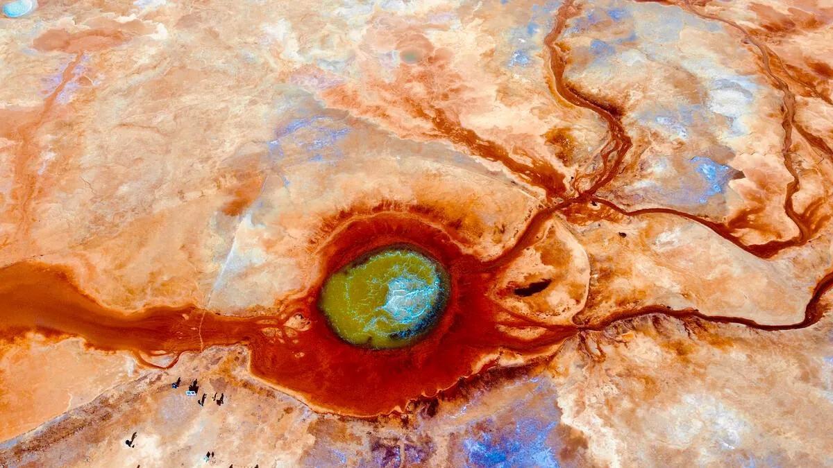 第四天从茫崖市出发,行驶42公里来到艾肯泉(门票20)。艾肯泉直径有10多米,泉眼如同沸腾的开水,不断翻滚上涌,泉眼周围硫磺矿物质长期沉淀,色彩斑斓。从空中俯瞰,泉眼与喷涌出的泉水以及周围土地上深红色环带状的沉淀物,组成了一个奇特的瞳孔造型,仿佛一只镶嵌在大地上的眼睛,被称为恶魔之眼。游览完艾肯泉,继续行驶488公里来到格尔木住宿。