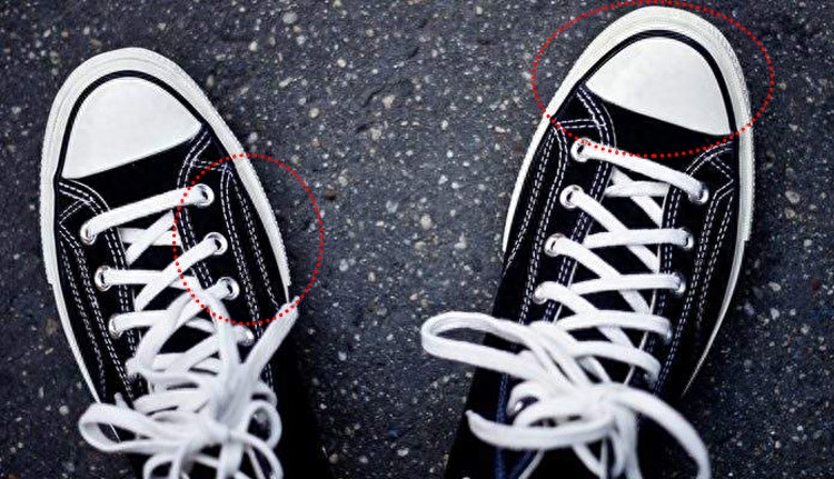 所谓的切,就是看细节,真鞋的走线是十分工整的,且侧面是双排走线,这是匡威鉴别真伪的重要一点。