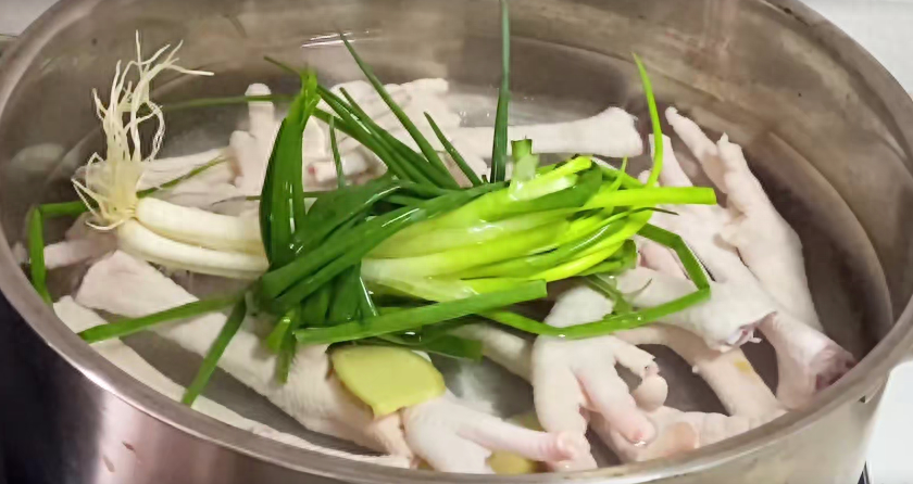 首先,我们将购买回来的鸡爪把它的指甲剪掉,给它剪完指甲后,再用水给它清洗一遍。将它放入锅中,锅中加入适量的生姜、葱以及料酒,大火煮五分钟左右。等看到锅里已经开始浮出浮沫或者其他的东西出来,我们再用勺子舀这些浮沫出来,这样不仅可以去腥,而且也没有其他异味,再焖上五分钟就可以出锅了。