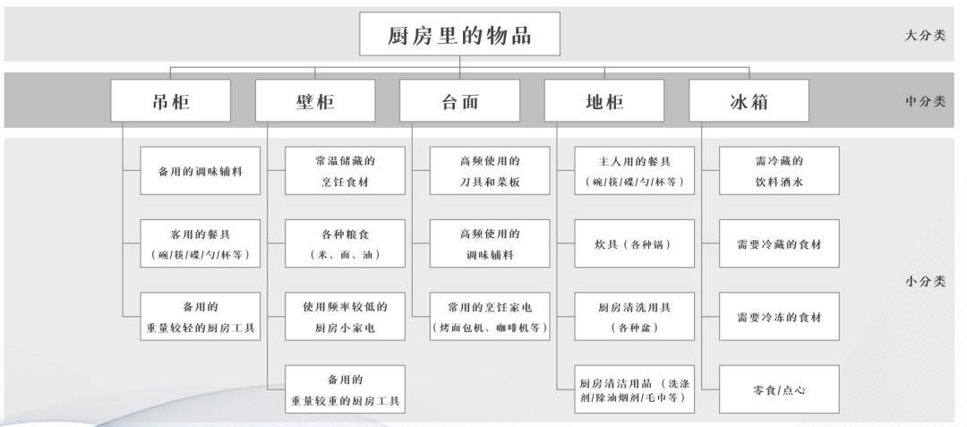 厨房的物品则属于这个家里面的大类别。