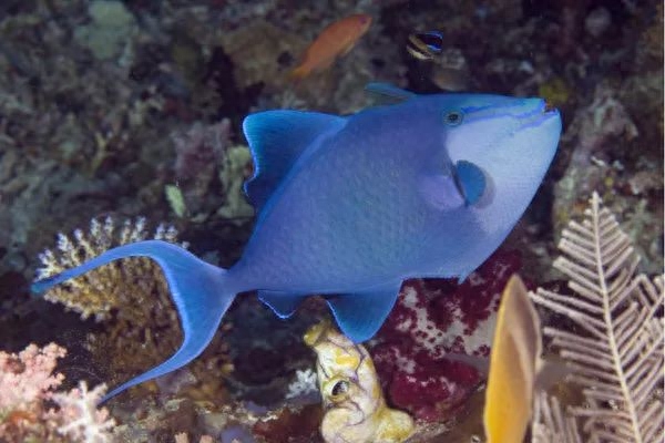 魔鬼炮弹鱼,属于皮剥鲀科,俗称尼日尔炮弹、红牙炮弹、黑炮弹、蓝炮弹。主要分布在珊瑚海,塔西提岛,斯里兰卡等地。